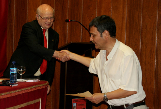 A las 20:00 h del viernes 22 de Mayo se celebró en el Salón de Actos del Círculo Mercantil e Industrial de Sevilla, la Clausura del V Certamen Internacional de Novela Corta Giralda, estando la Mesa conformada, de izquierda a derecha por: D. Fernando de Cea, Presidente del Jurado, D. Francisco Cárcamo, Delegado de Cultura y Bibliotecario del Círculo Mercantil, D. Francisco Pérez Guerrero, Teniente de Alcalde Delegado del Distrito Triana, D. Agustín Pérez, Presidente de la Asociación Artístico-Literaria Itimad, y D. Ramón Gómez del Moral, Secretario del Jurado y de Itimad.